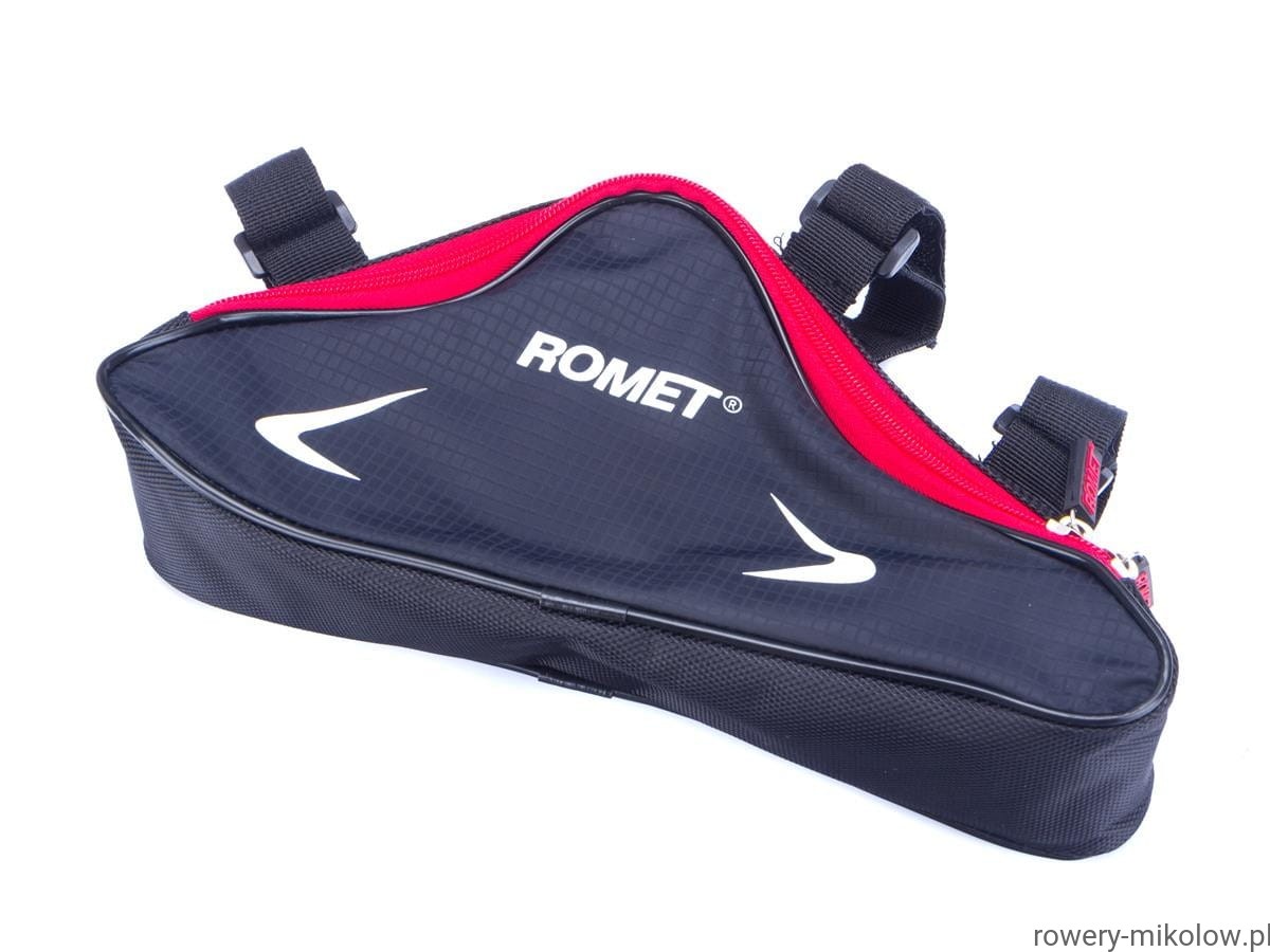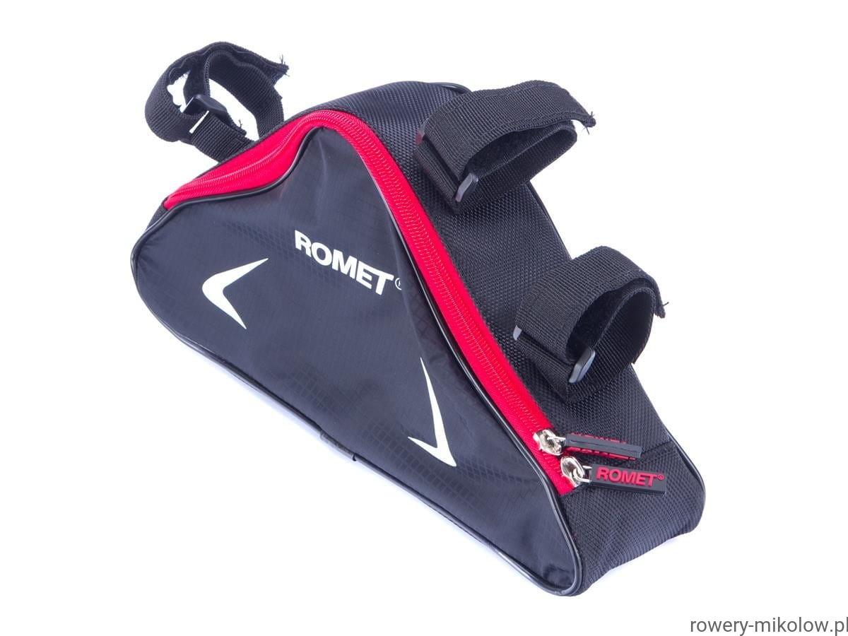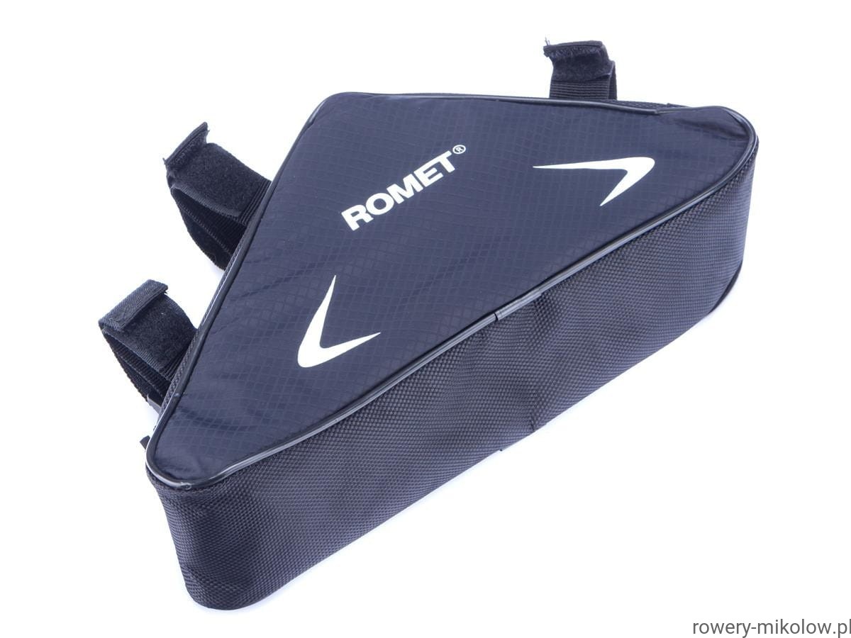 Sakwa trójkątna na ramę, wykonana z wodoodpornego poliestru, wbudowana usztywniająca wkładka, odblaskowa lamówka, pojemność 0,6L