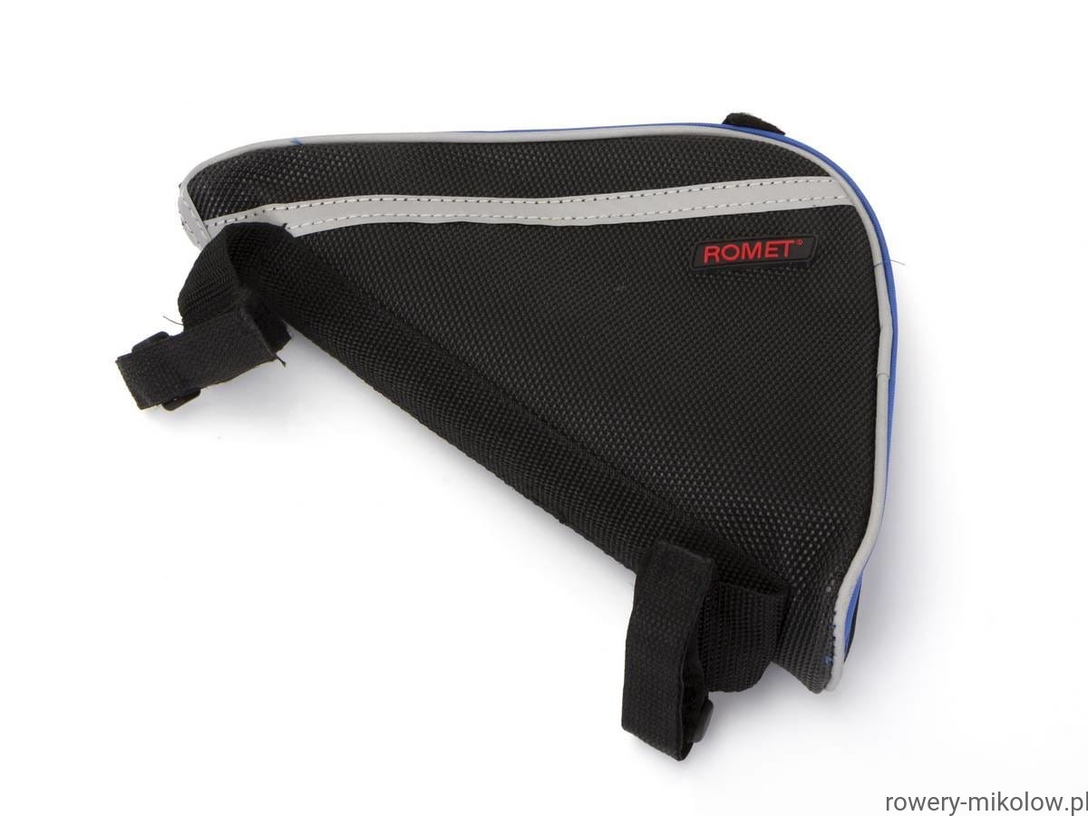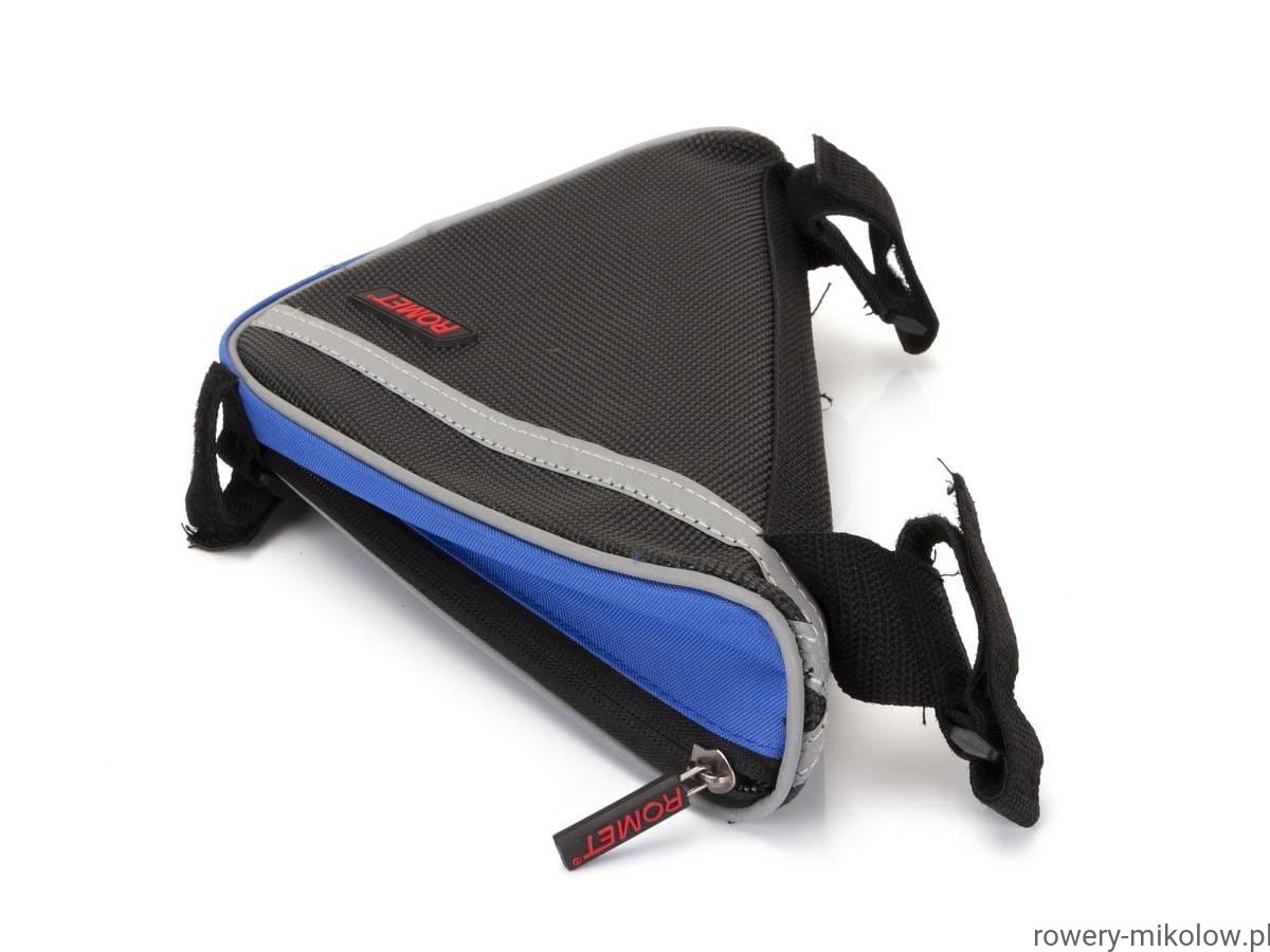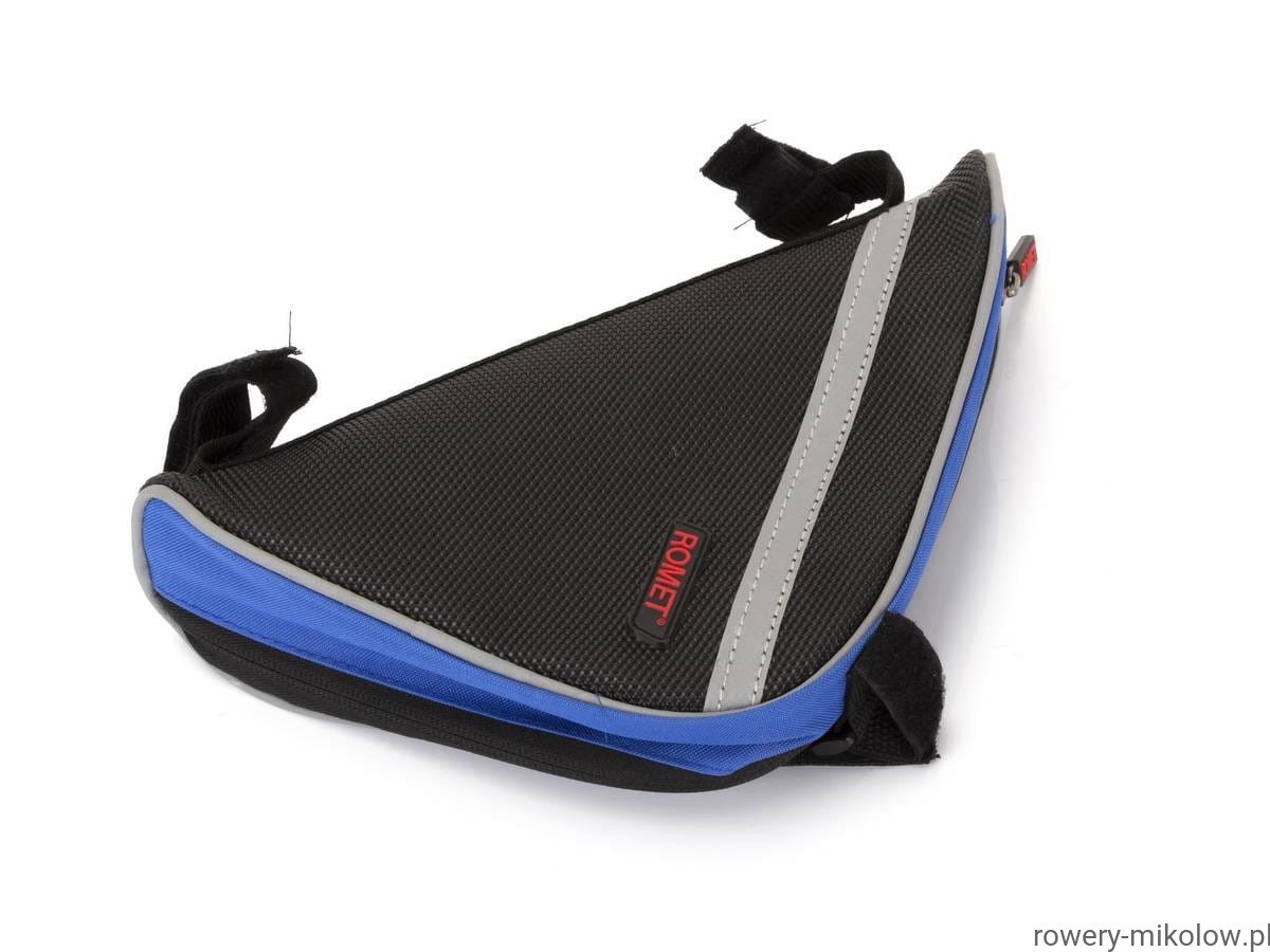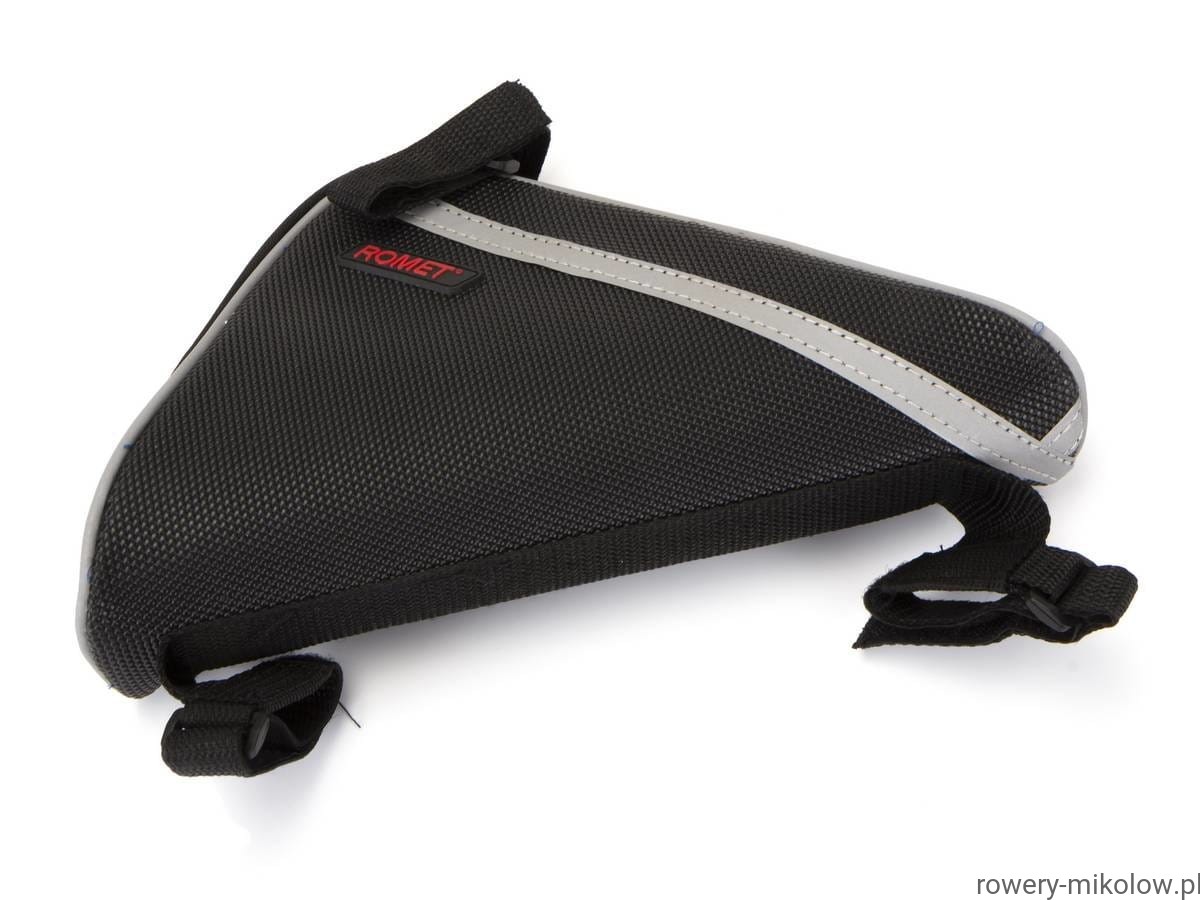 Sakwa trójkątna na ramę, wykonana z wodoodpornego poliestru, wbudowana usztywniająca wkładka, odblaskowa lamówka, pojemność 0,6L